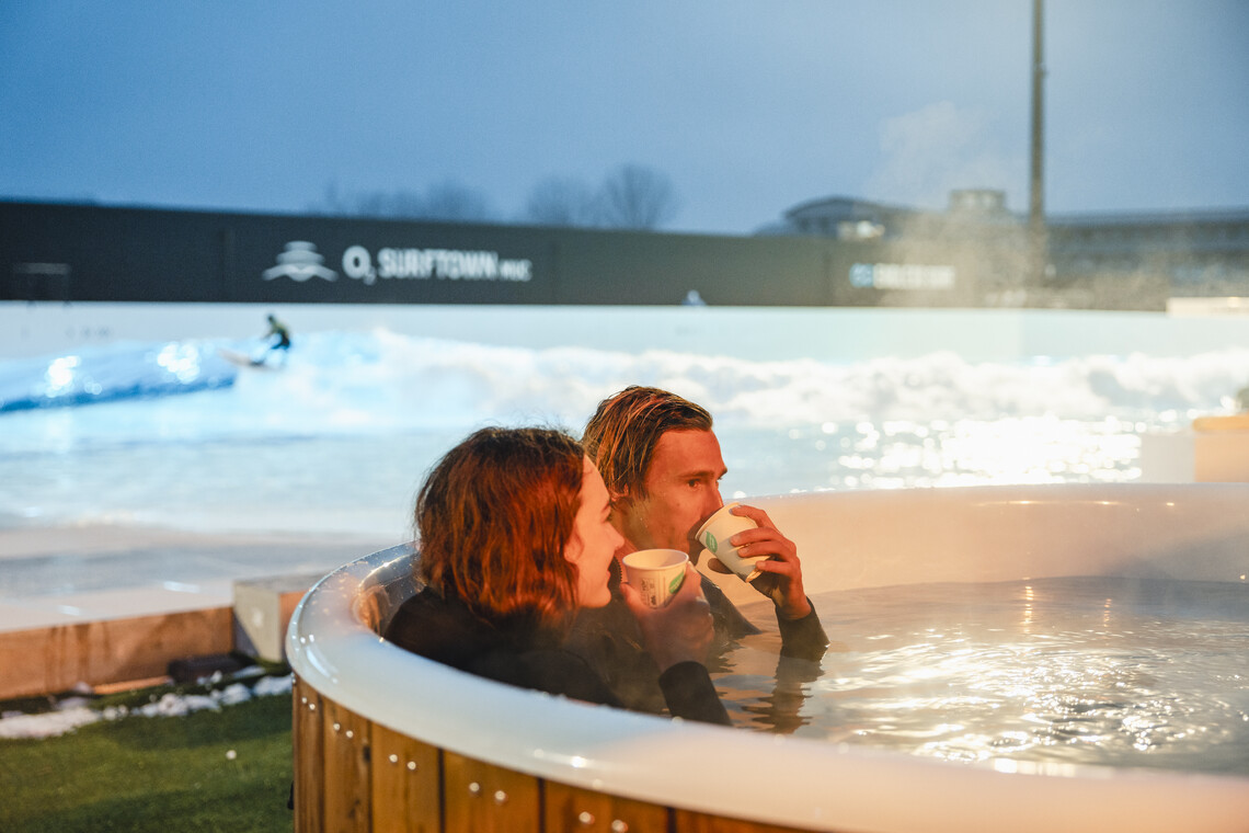 Gönn dir eine Pause im Hot Tub: perfekt zum Aufwärmen zwischen oder nach deiner Session oder einfach zum Entspannen mit Blick auf die Welle. Der Hot Tub steht dir vor Ort kostenlos zur Verfügung und sorgt für die Extra-Portion Wohlfühlmomente – egal, wie frisch es draußen ist.