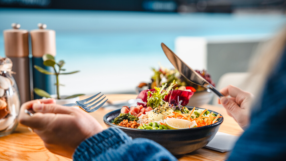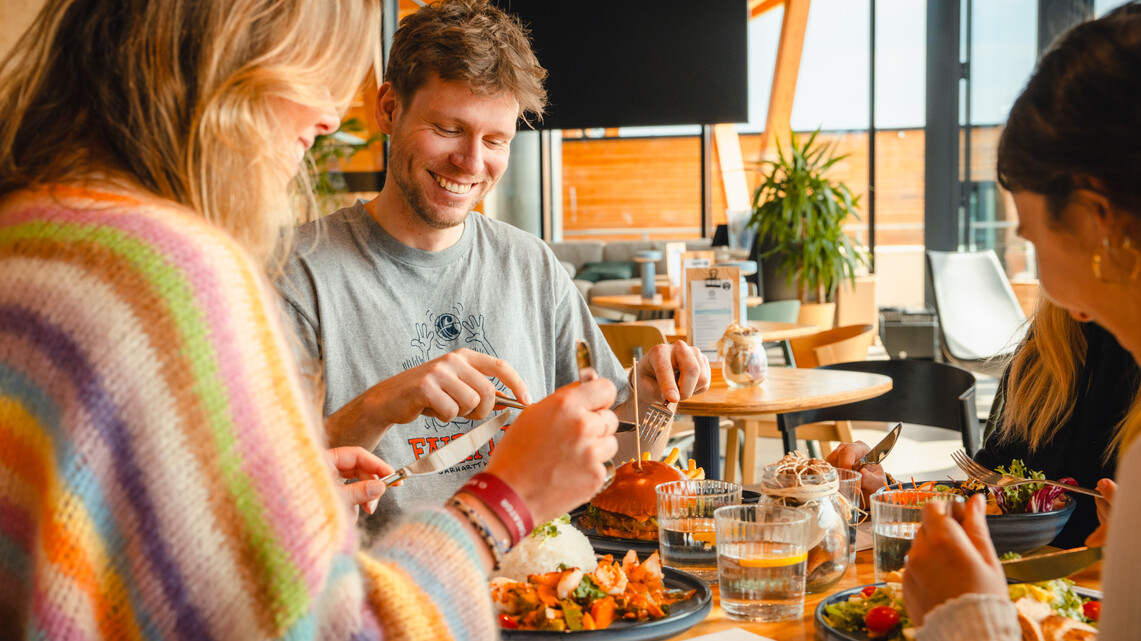 Our culinary offerings leave nothing to be desired. Start your day with a delicious breakfast, enjoy healthy bowls, juicy burgers, crisp salads, and tasty desserts. Whether you're grabbing a quick snack between surf sessions, having lunch, a cozy dinner with family, or a relaxing after-work drink with friends on our large sun terrace—we offer modern international cuisine, accompanied by a fine selection of wines, or perhaps you'd prefer a cold beer, refreshing spritz, or one of our signature long drinks?